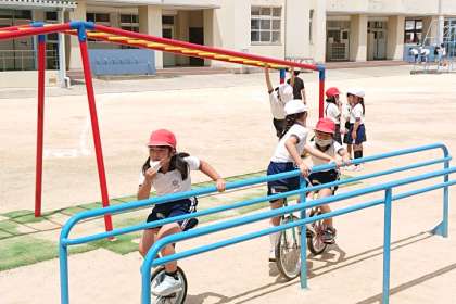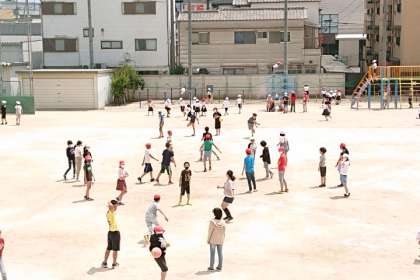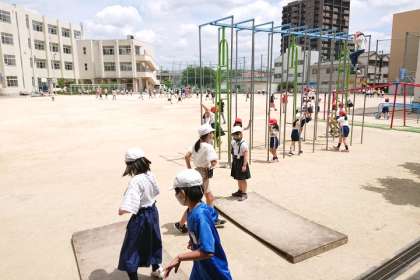 気温は高いですが、たくさんの子どもたちが外遊びしています。