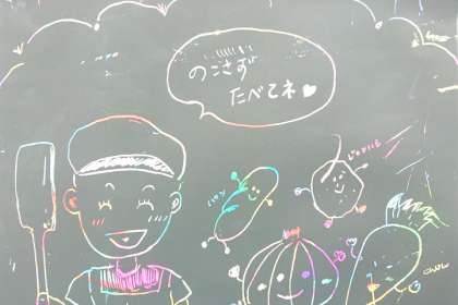 本校の給食調理員が、仕事の合間に、子どもたちが見て喜びそうな掲示物などを作っています。