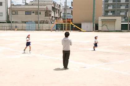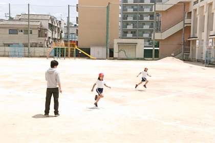 短い距離でスタートダッシュの練習をした後、実際に50mを走ってみます。
