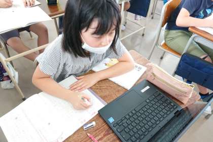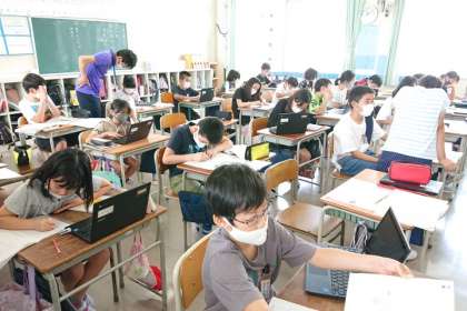 子どもたちは、端末を上手に使って、一生懸命調べています。