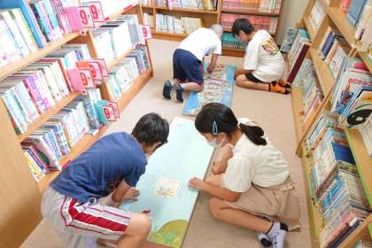 友達と一緒に本を読んでいる子どももいます。