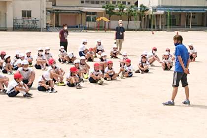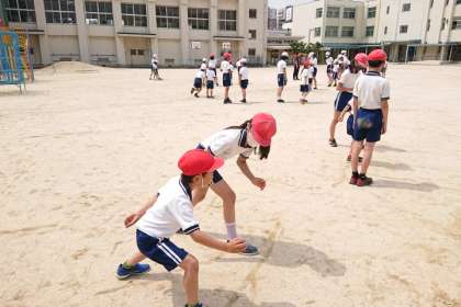 スタートの仕方や走り方を6年生からていねいに教わっています。
