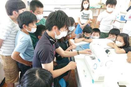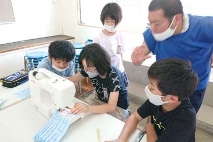 ミシンの使い方を覚えて、一人一人ミシンを使って、布をぬう練習をしています。