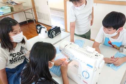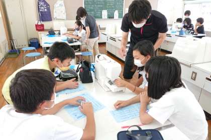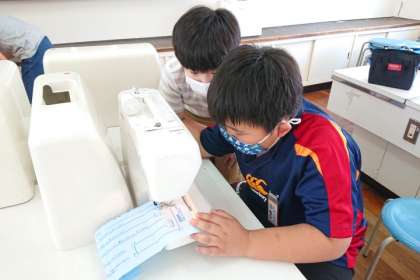子どもたちは、ミシンの動きを確認しながら慎重に練習しています。
