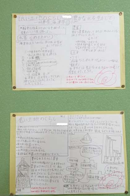 社会科の学習で、「低い土地のくらし」について学習したことを一人一人がまとめました。