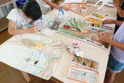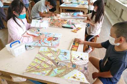 次に、木で何かをしている自分や友達の絵を貼っていきます。