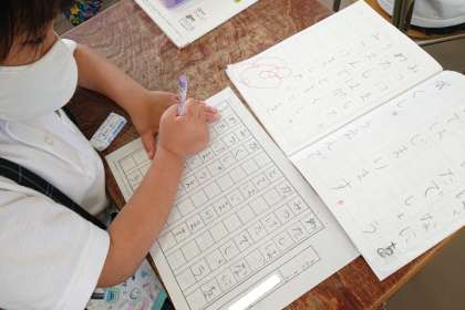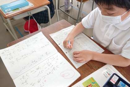 ノートに書いた下書きを見ながら、作文用紙に清書していきます。