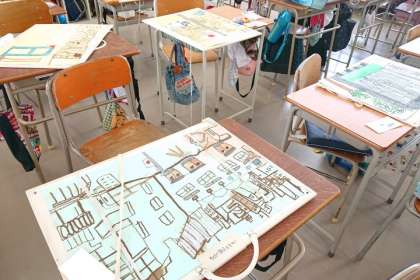 自分が好きな学校の風景をスケッチし、絵の具で着色していきます。