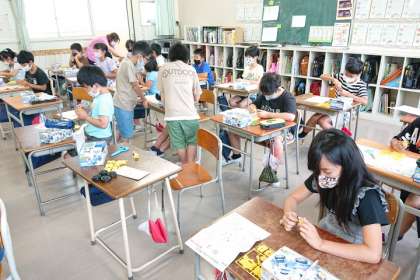 初めに、身の回りのどんなところに電気が使われているのか、話し合いました。