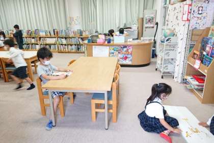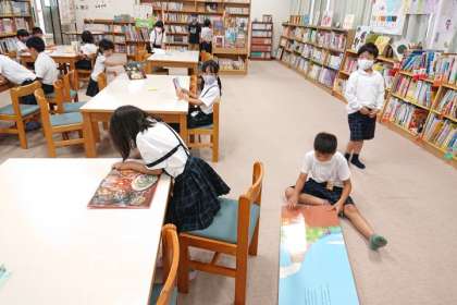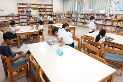 図書室では、たくさんの子どもたちが本を読みに来ています。