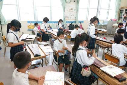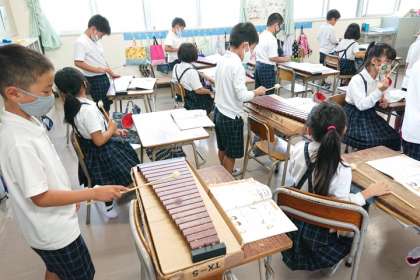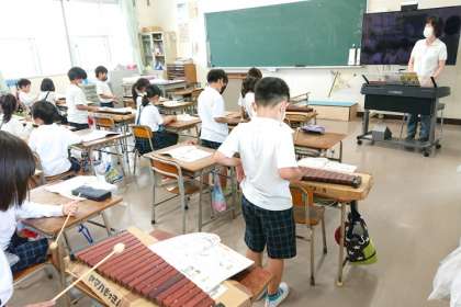 2年生では、鍵盤ハーモニカの代わりに、同じ鍵盤楽器の木琴を使って「かっこう」の曲の練習をしました。