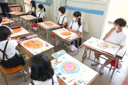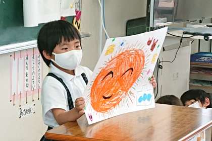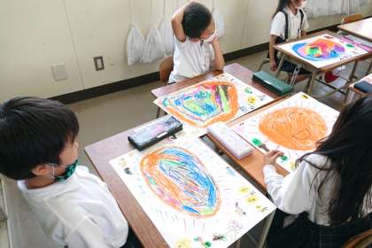 一人一人が形や色を工夫し、にこにこ「おひさま」を画用紙いっぱいに描きました。