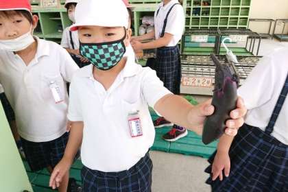 2年生の子どもたちが、自分たちが育てて収穫したなすびを見せてくれました。
