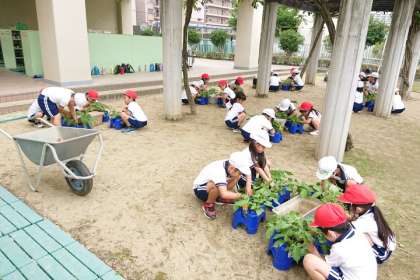 アサガオの植え替え(1年生) 〜6月18日〜