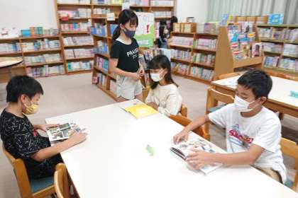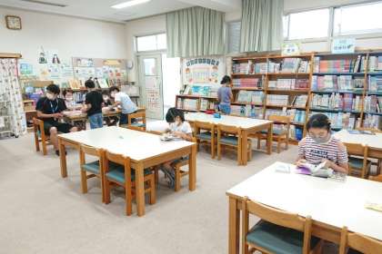 図書の時間、子どもたちが本を探して読んでいます。