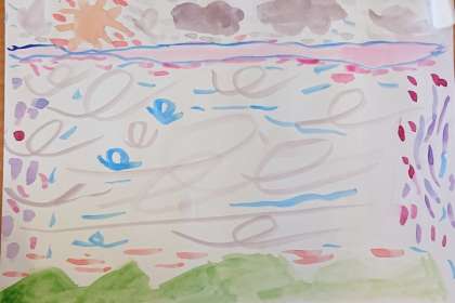 絵の具を2種類だけ使って、絵の具の量や水の量を変えていろいろな色をつくり、模様を描いていきます。