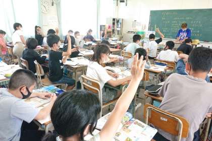 子どもたちは教科書や資料集で調べ、一生懸命ノートにまとめています。