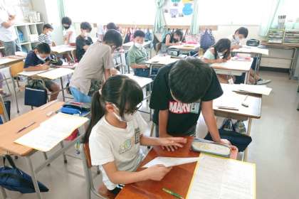 「のぶよ」の気持ちや行動がわかるところを本文から読み取り、そのときの気持ちについて考え、ワークシートにまとめていきます。