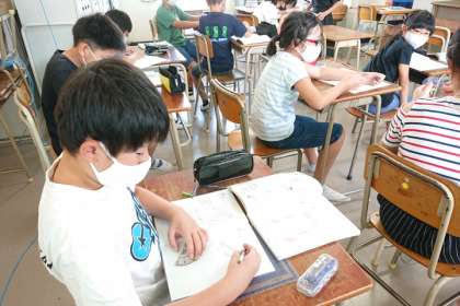 角の大きさや長さを確かめながら、合同な図形をかいています。