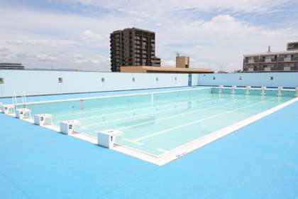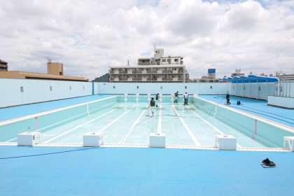 今日は、業者の方にプール本体の清掃をしていただきました。