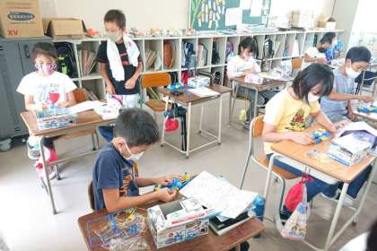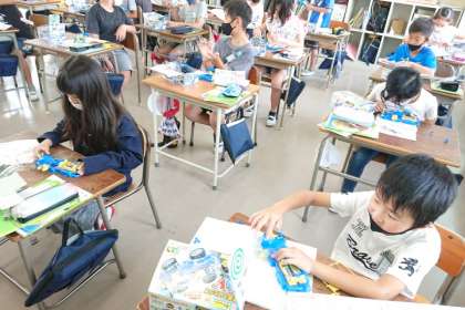 理科の時間は、実験教材を使って、電気の流れ方について学習しています。
