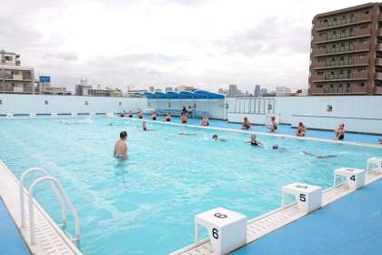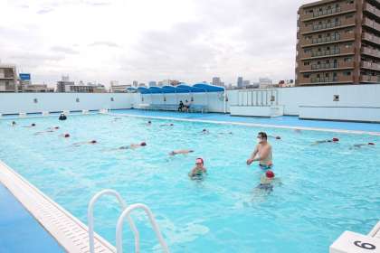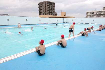 5年生は、けのびやばた足、クロールで何mあたりまで進むことができるか、ゆっくり泳いでみました。