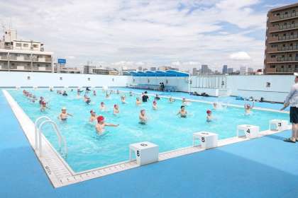 顔をつけたり、もぐったりして、少しずつ水の中の感覚に慣れていきます。