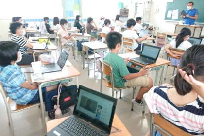 子どもたちは、理科の時間にイベントについての説明を聞いていました。