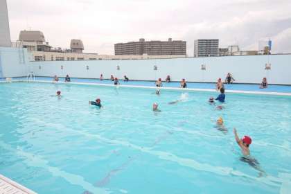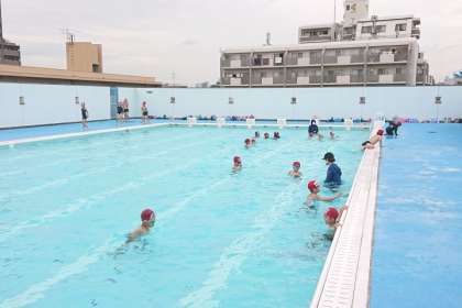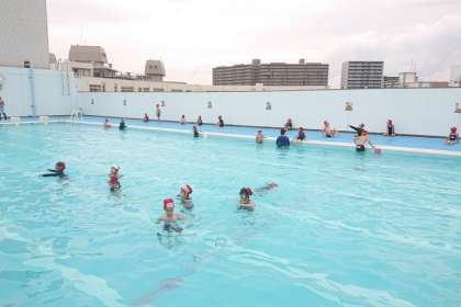 プールの底にある物をもぐってとるのは子どもたちにとって難しいようです。
