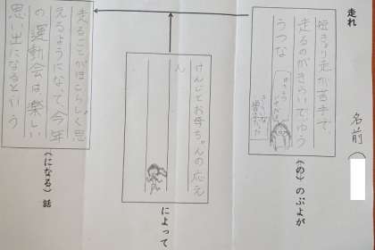 自分の言葉で、「走れ」のあらすじを短い文にまとめています。