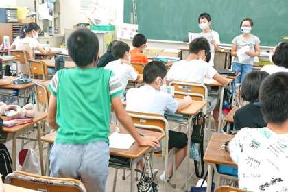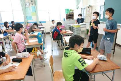 今日の集会は、集会委員が1・3・5・6年の各教室に出向き、ゲームを行いました。