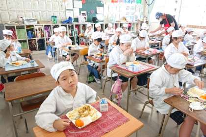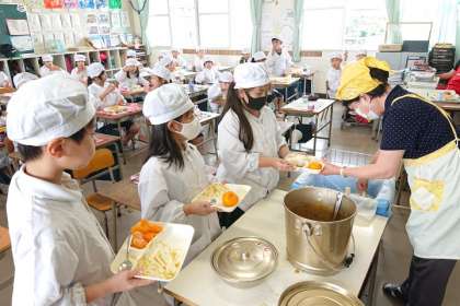 「おかわりする人」と聞くと、たくさんの子どもたちが手をあげました。