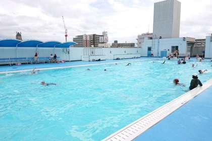 プールを横に泳いだあと、25mまでのコース、25mのコース、50mのコースに分かれ、自分の泳力に合わせて泳ぐ練習をしました。