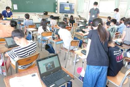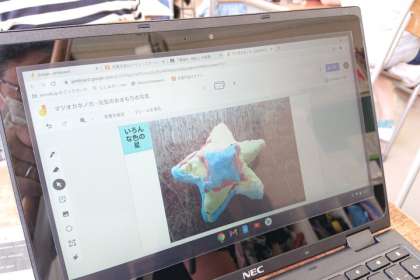 完成した作品を1人1台端末を使って、自分がいちばん気に入っている方向から写真をとりました。