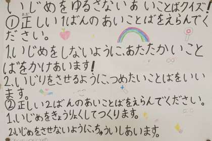 代表委員会の子どもたちが、「いじめを許さない合言葉」を広める活動をしています。