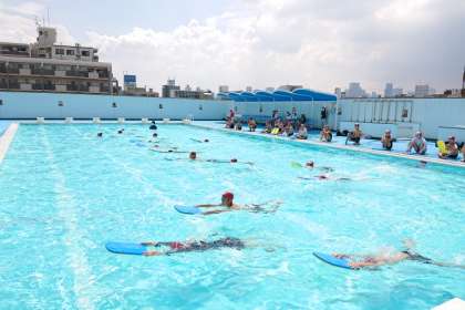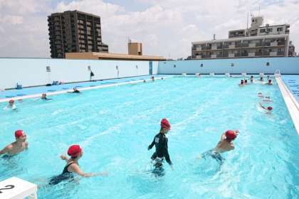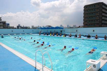 その後、泳力に合わせて手足の動きの練習、25mまでの練習、25m以上の練習のコースに分かれて学習しました。