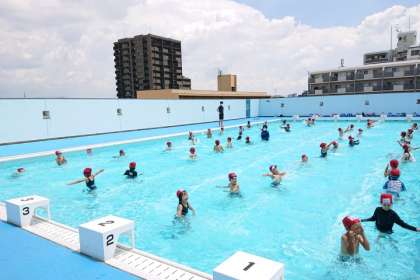 2年生は、顔をつけたりもぐったり浮いたりなどの水に慣れるための練習をしました。