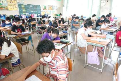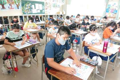 1時間目に教室をのぞくと、4年生、6年生がテストに取組んでいました。