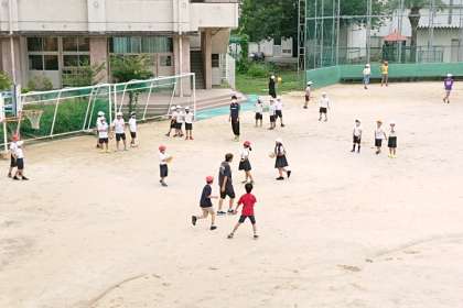 20分休みは、運動場の土が乾いてきたので、赤い旗をとりました。