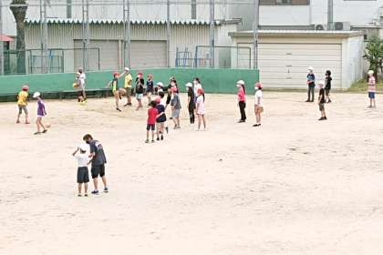 運動場に赤い旗が立っていると「運動場で遊べない」の合図。