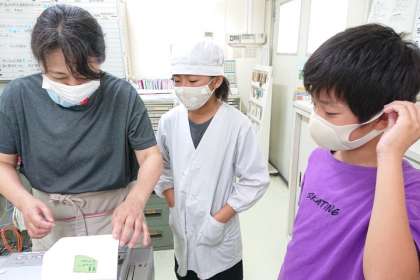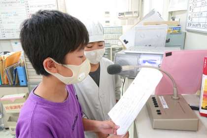 給食の時間、保健環境委員会の子どもたちが、先日の「清潔調べ」の結果、つめを短く切る、ハンカチを持ってくるなど、がんばって取組んだクラスを発表しました。