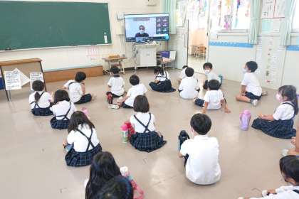 次に、生活指導担当より夏休みのくらしについて話をしました。