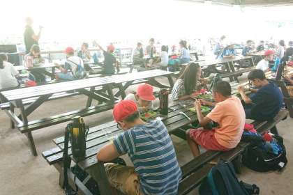 昼食のお弁当を食べています。
