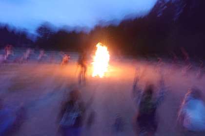 「燃えろよ燃えろ」の歌と、ゲームで楽しみました。