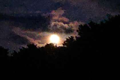 キャンプファイアーの火は小さくなってきましたが、空にはまん丸で明るいお月さまがうかんでいます。