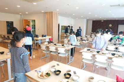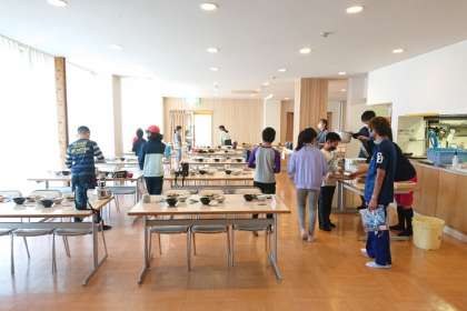 食事係が、朝ごはんの準備をしています。