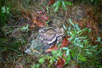 キャンプファイアーの帰り道、宿舎の玄関近くで、大きなカエルを発見!