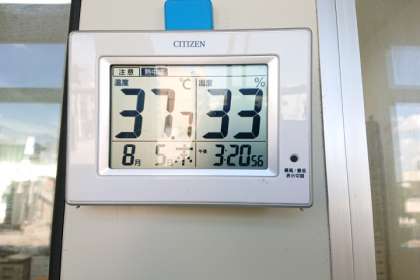 お昼過ぎ、職員室前の温度計は37.7度を示していました。