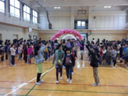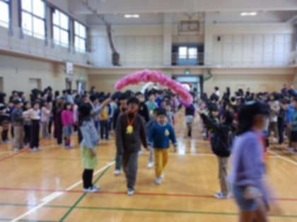 6年生が1年生を迎えに行って、手をつないで入場しました!児童会の実行委員がアーチを作ってくれました。