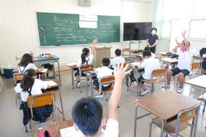 学級を2分割して学習しています。